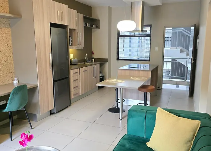 Situated in the bustling suburb of Rivonia, the Atrium Oasis offers a serene retreat amidst Johannesburg's vibrant energy. Combining modern comfort with natural beauty, this exquisite oasis features a sun deck that invites lounging under the African sun, alongside a lush private garden designed for relaxation. Guests will appreciate the convenience of complimentary parking, making their stay even more accessible.